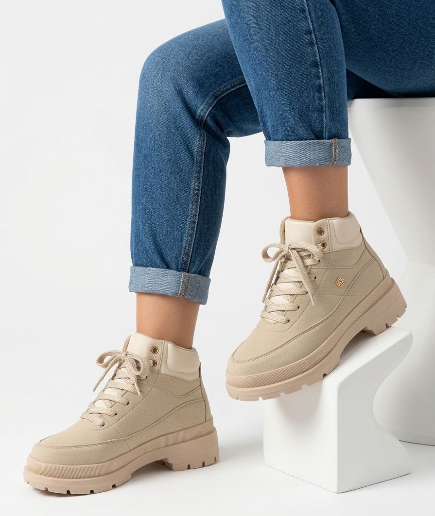 Ajuste: Cordones y ojales metálicos.