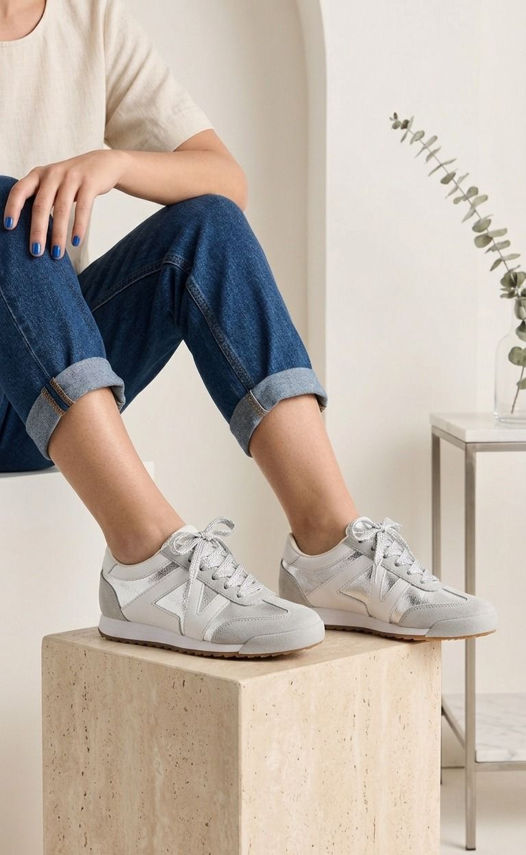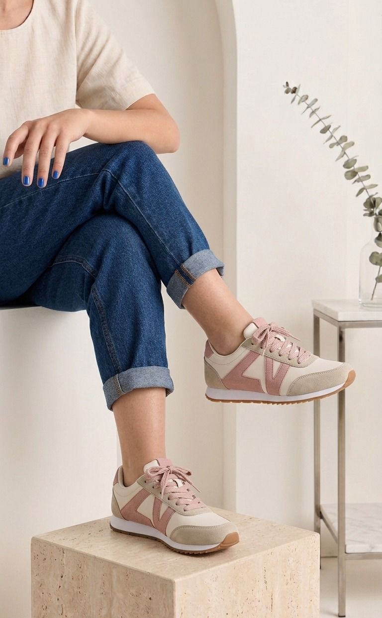 Combina comodidad y estilo con estos sneakers de silueta clásica. Su diseño en tonos neutros con detalles metalizados y pasteles los hace perfectos para elevar cualquier look diario, desde jeans hasta faldas hermosas.
